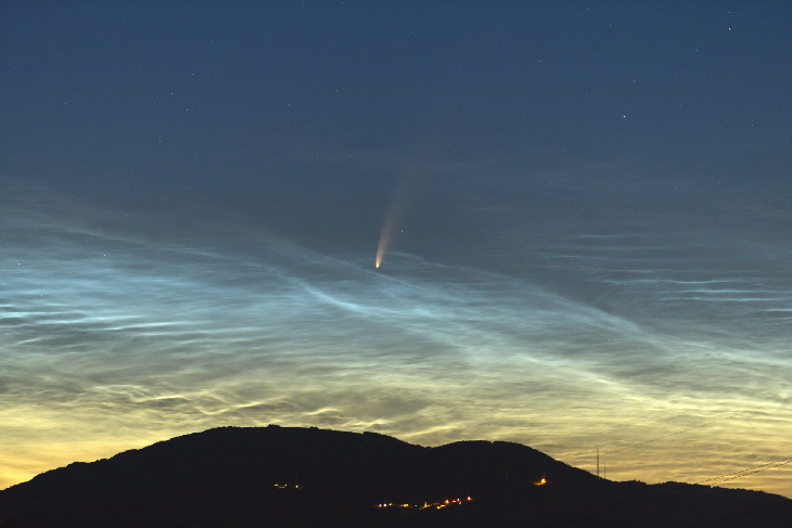 The comet was very bright, the tail was visible to the naked eye, and the noctilucent clouds added a piece of charme to the whole.
