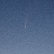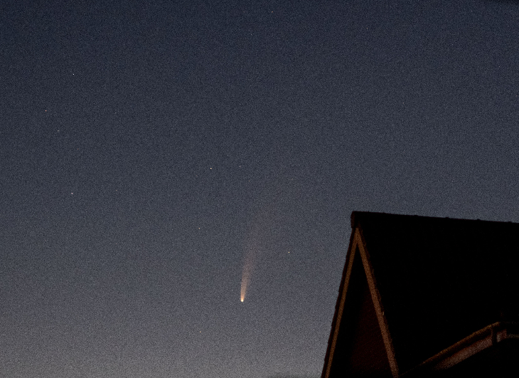 After several days of murky weather, a clear night. Time to see if Comet NEOWISE could be spotted. Out into the back garden in the pre-dawn dark and there, in the northern sky, was hanging the pretty little comet. Plenty going on the pre-dawn sky, noctilucent clouds and Jupiter, Venus and the Moon all shining bright. With local sunrise at 05:01, after 03:30 the comet was fading into the light.