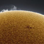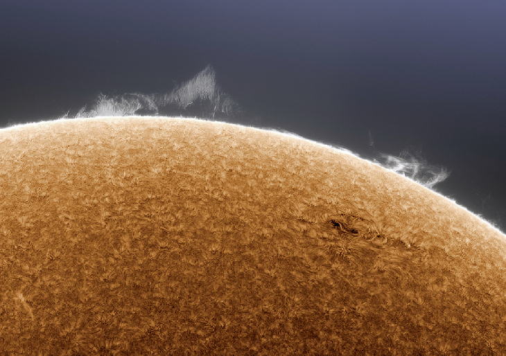 The sun has given us astronuts a good reason to get up, get outside and look up... a lovely large group of prominences calling attention to the solar limb as a solar cycle 25 active region rotates on the face of the sun nearby. Beautiful and compelling stuff!