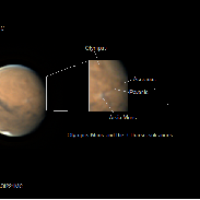 With the solar illumination of the planet not yet at opposition, the main landforms are highlighted thanks to their shadows.