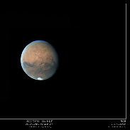 Mars less than a month after the opposition continues its approach to the Earth and its diameter has exceeded 20 "of arc. In this image you can see the south polar cap, the blue fogs in the north. Sirenum sea, the Solis Lacus and numerous volcanic regions near the Tharsis area