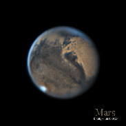 I imaged Mars from my from my backyard in Manorville,NY USA on 10-04-20. Using the IR(G)B technique for coloring this image. I leaned this from a Damian Peach's Astrophotography tutorials on his patreon channel that I became a Gold Member for $10.00 US a month so I can unlock everything on his page. He said this method is especially beneficial when seeing conditions are not great, or for those using large aperture telescopes (40cm or more.) He also said it is best to us your RGB filters when seeing is GOOD. I have a lot to learn. Seeing was poor at the time with slite winds and a 16.82 Day Old Moon close to Mars. I used a IR-742 Filter and a Blue Astrodon Filter then made a copy of the IR-742 (650nm) Filter and pasted the Blue filter to the IR-742 copy to make the synthetic Green file image. Then go to layers and opacity down to 50% then merge is your synthetic Green File. Then you need to merge all 3 files to get your color image. My setup was Edge HD14" / ZWO asi290mm camera 2 Filters used IR-742 (650nm) Filter and a Blue Astrodon Filter. ZWO adc atmospheric dispersion corrector / ZWO 8 position filter wheel in a 2X barlow. All guided with an 1600GTO German Equatorial Mount, I hope to share with you more more Mars images. I am praying for GOOD Seeing that is hard to come by. So tell me what you think in the comments.Kind regards to ALL!