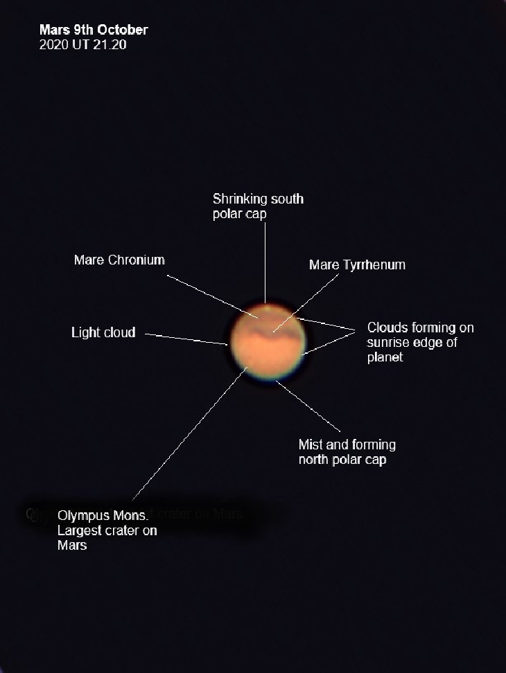 After processing last night's images today and consulting online Mars maps I have produced a labelled image of Mars through my 4 inch F9 refractor.