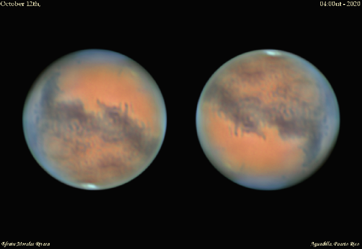 Mars on October 12th, 04:00ut. Hephaestus Rupes, Cerberus Dorsa and Eridania Planisia regions.