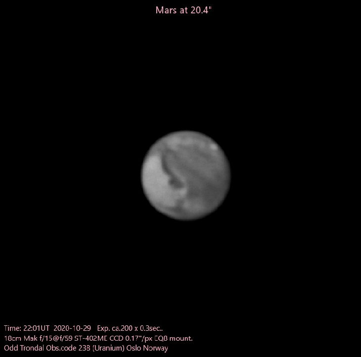 Mars at 20.4" Time: 22:01UT 2020-10-29 Data on image.