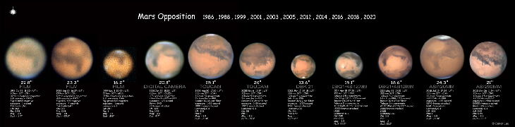 I put together 11 photos of Mars Opposition taken in 11 different years for comparison