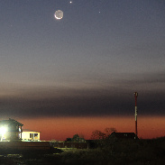On the morning of December 13, 2020, after occultation of Venus by the Moon (this was not visible everywhere in the Russian Far East), I photographed the beautiful rise of the Moon and Venus. Photo 3 also shows the meteor track. Canon EOS 60D (on the tripod), 18-135mm lens.