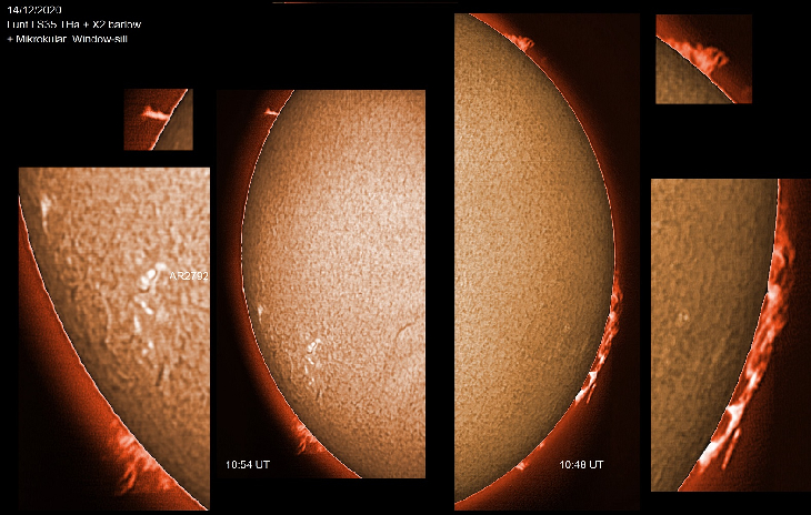 At this time of year I only get a brief "window" in which to image the Sun when it is located between 2 trees. However, this morning, I managed to get an interesting prominence on the SW limb.