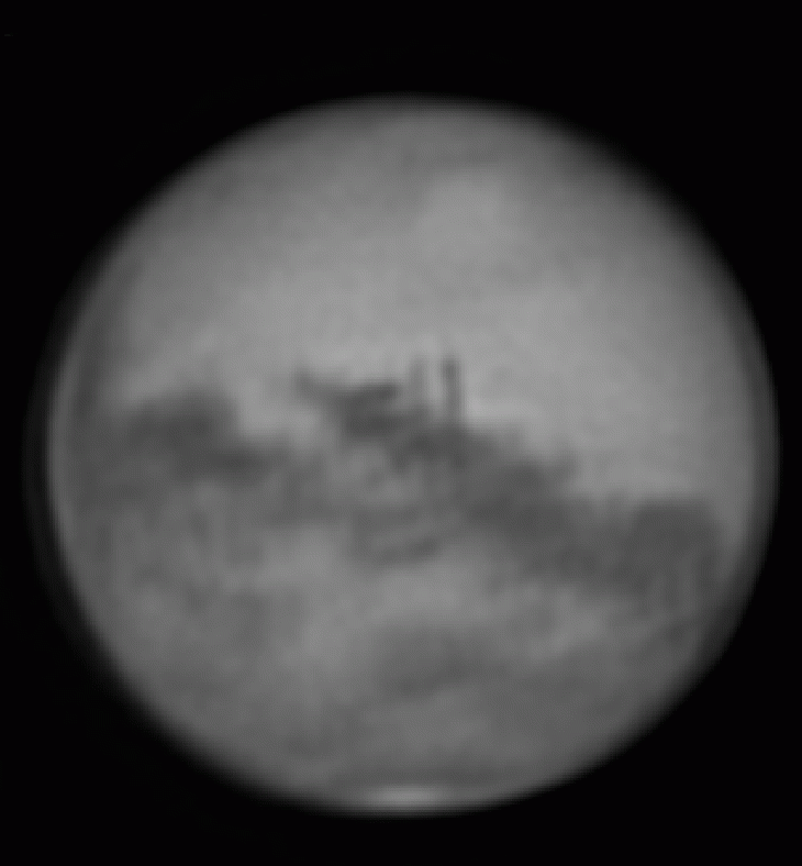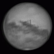 Mars imaged about every 10 minutes over several weeks in Sept and Oct and then compiled into a movie... You can see the volcanoes and many albedo features..