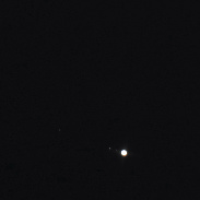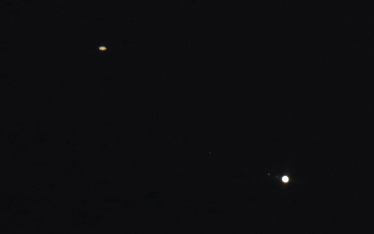 I observed with a 130 mm reflector. Both planets were visible at 82x. The Jovian moons visible were Ganymede, Europa, and Callipso. Io had just transited.