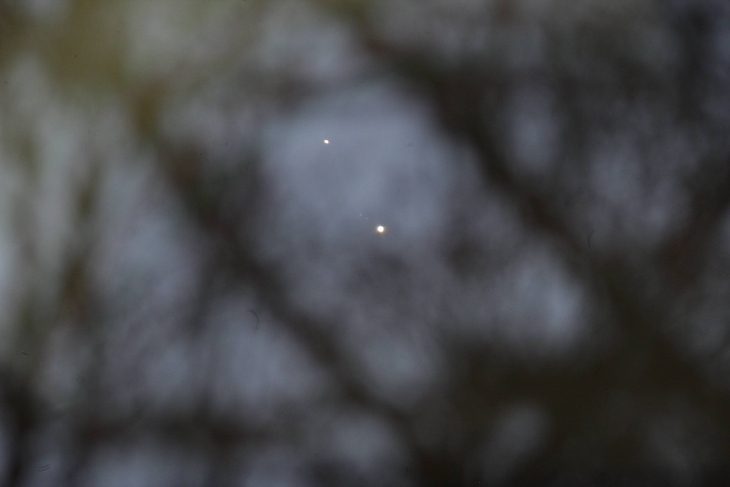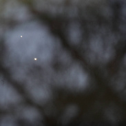 Here's an image from yesterday about 16:40. I centred the telescope on the sun to get the pointing close, did the GoTo to Jupiter then took my solar filter off and found the planets from there, starting at about 16:00. This was from the upstairs bedroom window, but as you can see I do have a few trees even from there. Saturn is certainly ring shaped and there are 3 moons of Jupiter visible when zoomed in. I do have a video but it's nearly a gig and very blurry most of the time, but sometimes Saturn's rings and disc are visible.