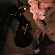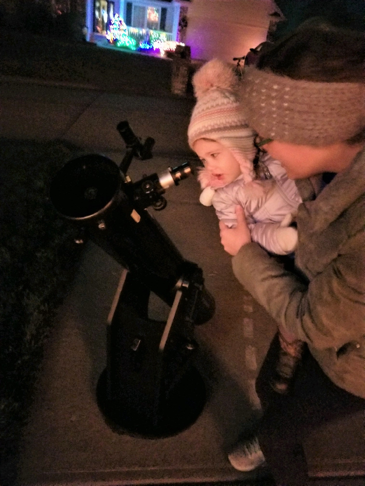 2 year old Mckynlee Corkery looking through a telescope for the First Time to see the Christmas Star Conjuction of Jupiter and Saturn with her mother Nik. She was in amazement. Another future Astronomer.