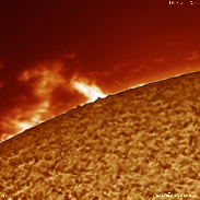 Prominences on both sides of the limbs. (ED80 APO, Moded Lunt 50THa, ASI290mm, Cemax 2x Barlows.)
