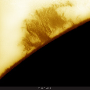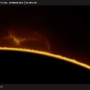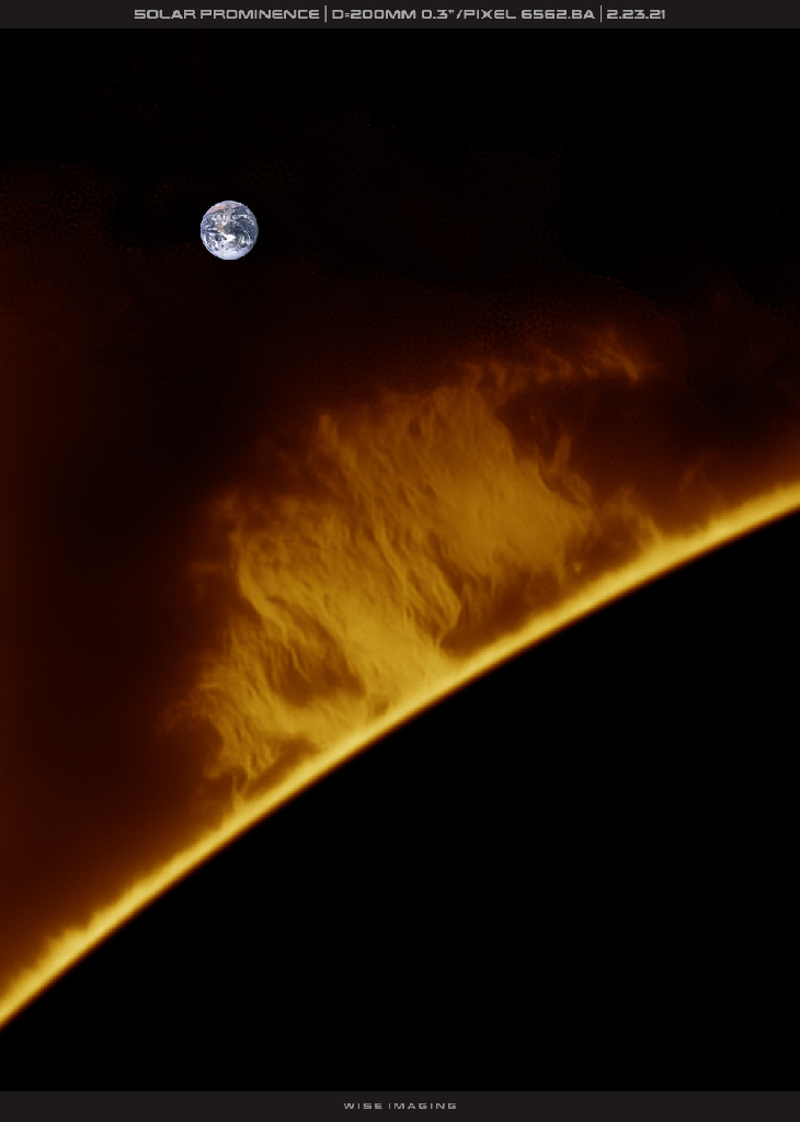 A huge prominence field in high res with earth scale and a wider FOV of the limb and all the prominences, 200mm and 100mm solar scopes.