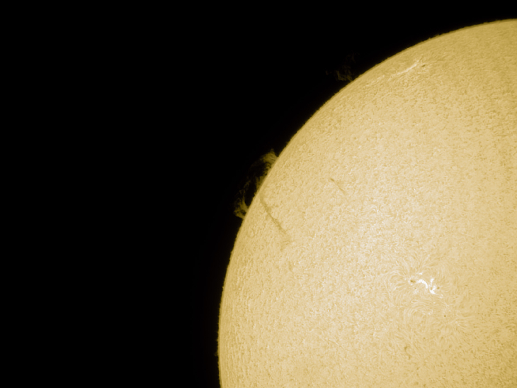 I saw a huge prominence rising off the limb off the sun. I managed to image it with my Coronado PST and my ASI1600MM camera. It was the largest I had seen in my short time observing the sun. The image is presented here in false colour as I was imaging in mono.