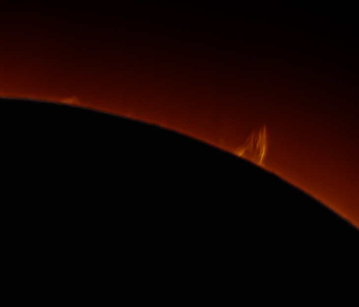April 24,2021 - Nice Prominence on the Sun today. Daystar Quark Chromosphere on Explore Scientific ED80 Refractor. 1000 Frames captured on SharpCap 3.2; stacked 400 frames on AutoStakkert; processed using imppg and Photoshop cc.