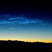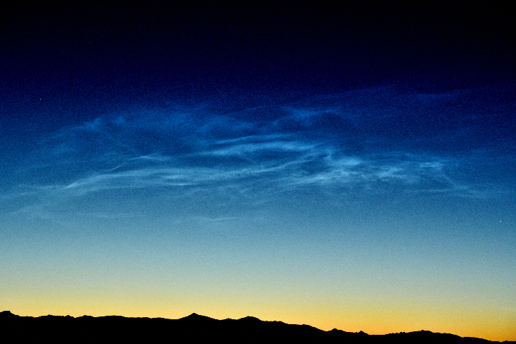 For the second time this week we have a good display of Noctilucent clouds. This evening I see them to the northwest as Venus was setting on Baldy mountain. It was a gorgeous display!