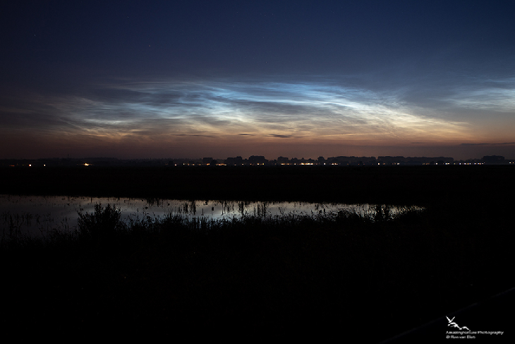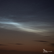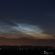 A bright display of noctilucent clouds showed up tonight, after some thundershowers had passed earlier and skies were clearing again.