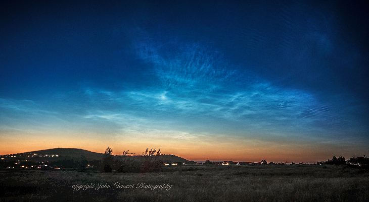 Here in Kennewick Washington this week noctilucent clouds finally showed up twice in one day. The morning-3:50 am and evening skies-10:10 pm had wonderful displays of the beautiful blue clouds. The morning capture was a two image vertical panorama and the evening image was a 3 image horizontal panorama. The ridges in the evening panorama from left to right are Rattlesnake Mtn. Then Red Mtn.(world renowned wine grape viticulture) then Candy Mtn and Badger Mtn. Camera Olympus OM-D Mark III lens 12-40mm F2.8 ISO 200 1-3 second exposure. The morning image same camera and settings but looking east from the same location.