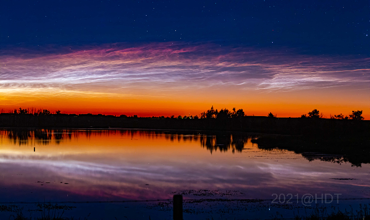 The Noctilucent Clud display started early tonight at 2230 hrs MDT, the early part of the display covered the entire Northern sky at one point, it then settled down and turned a ruddy red colour and was quite amazing to see, this may have been caused by wildfires burning to the north.