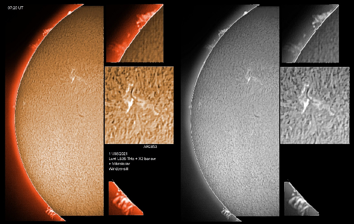 Plage AR2853 still well in evidence, and a new AR appearing on the NE limb.