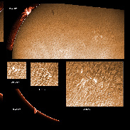 More luck with cloud dodging today. The complex prominence reported yesterday is still there, together with numerous sunspots!