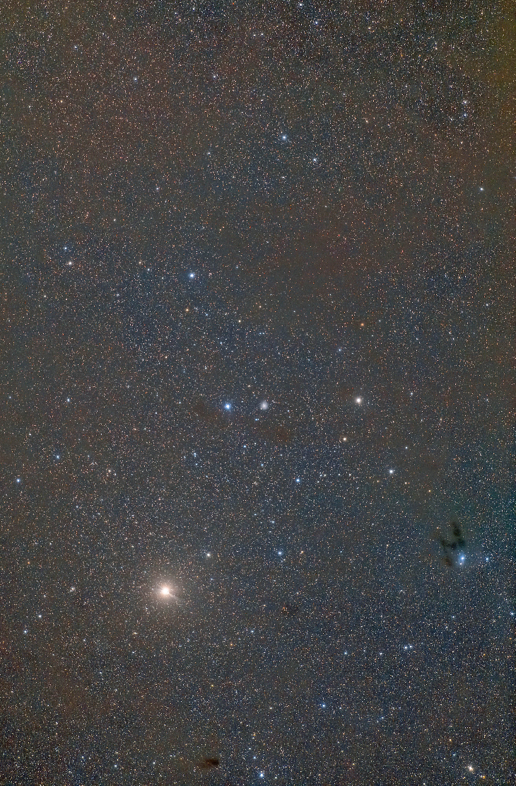 Comet 29P/Schwassmann-Wachmann near Hassaleh (ι Aur). Data: EF300mmF2.8L USM, CanonEOS6D, 12800 ISO, 40x60sec stacked (13:36-14:16 UT), North: left, FOV: 4.6 x 7°