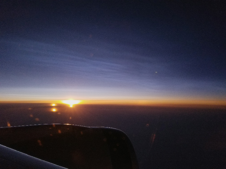 Flying back to the United States after a wonderful trip to Abisko, Sweden with Lights Over Lapland and saw these blue clouds as the plane went over Greenland.