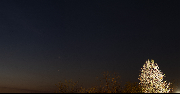 Too many trees, lights. Narrow time interval between Jupiter rising, too bright sky. A stitched pano.