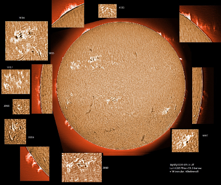A busy surface today, together with some interesting prominences.