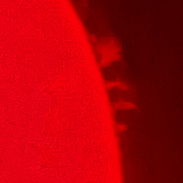 AR 3014 is heading to NW limb, and still striking visually in safely shielded binoculars.Thefaculae following it are unstable and promise flaring in solar center today. But the display of fine prominences on the NW limb was the big attraction this morning! Lunt 60, B 1200 Ha diagonal, 12mm Plossl, iPhone 12s.