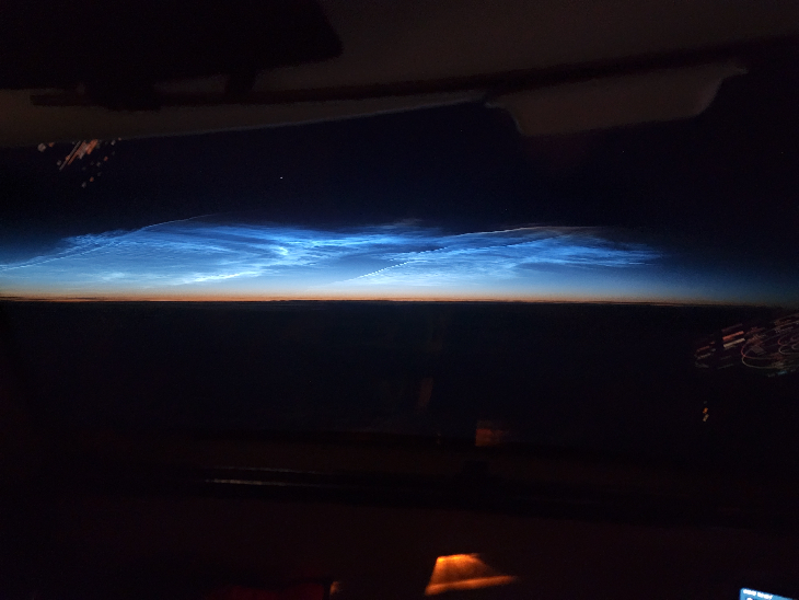 While captaining a Global Express aircraft over the North Atlantic, I had the pleasure of viewing Noctilucent clouds for hours as I made my way towards Europe. I have never seen them so well defined.