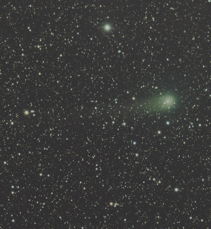 Comet 2017 K2 is now starting to show nice color. Still months away from maximum brightness this is presently the brightest comet in the sky at mag.9.3. Captured with iTelescope T68 4 x 120 sec stacked.
