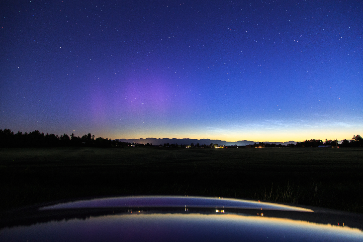 I calculated out that NW Montana would see the northern lights for a very brief period of time, both because it would be a quick show because of the data and it's one of the shortest nights of the year. I got into position, and sure enough, the activity lasted for about 5 minutes. The noctilucent clouds were a very nice surprise too. 1st sighting of the year after an incredibly cloudy year here. 1st time we are seeing the stars again in a long time too, because of the above mentioned clouds.