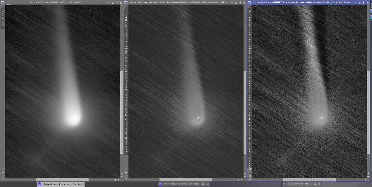 With added confidence from yesterday's core images (Thanks Dr Clay) I decided to switch out cameras on the RASA 11 (presently using an asi6200mmP 3.9"/px for sky survey work) for the 2.9"/px ASI 183mmP in hopes of catching more detail in C/2017 K2's core. Seeing was slightly worse and the camera has a smaller field of view but I had to try. Here are the preliminary results of this past night's imaging seeing.