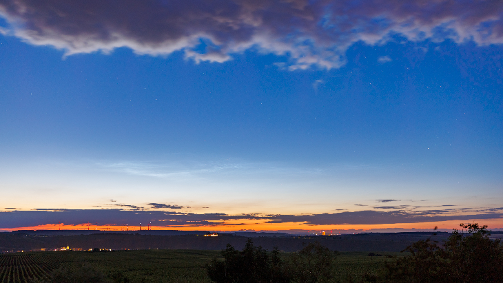 NLCs captured at 01.07.2022 at 23:00 pm. Seen from Nordheim a. Main, Germany, looking to the north.