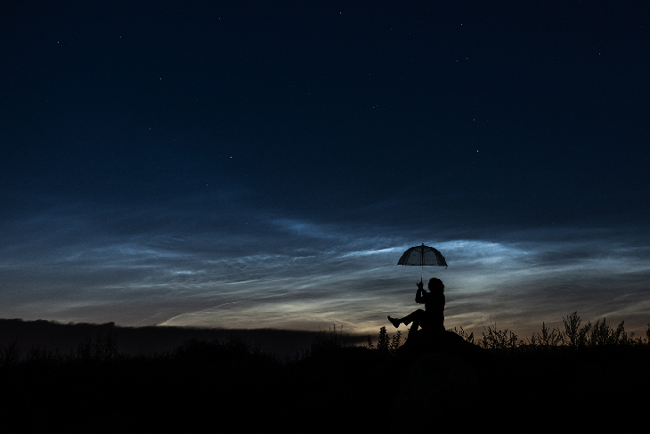 The season for the night clouds continues. Yesterday in Poland at midnight I saw a bright display. But take it easy. You don't need an umbrella. You can leave it at home. It never rains from these clouds. They are the driest clouds on Earth.