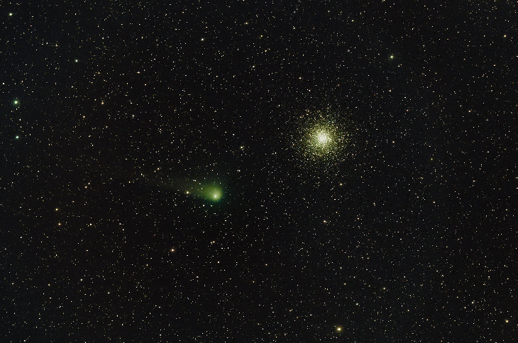 Even with the nearly full Moon it was a nice night in Siding Springs to remote the capture of the close conjunction of M10 and Comet 2017 K2. This photo was a capture with iTelescope T69 and is a stack 0f 4 x 120 sec.