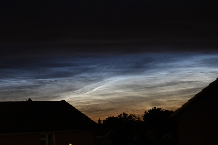 NLC: 15 July 2022, 2.20 - 4.05 a.m. (0120 - 0305 UTC) from southern England, UK (Latitude 51.42 N). These photos taken around 3.10 a.m. The 13th NLC sighting of the season for me. A bright display, but the detail spoilt somewhat by a good deal of Cirrus cloud.