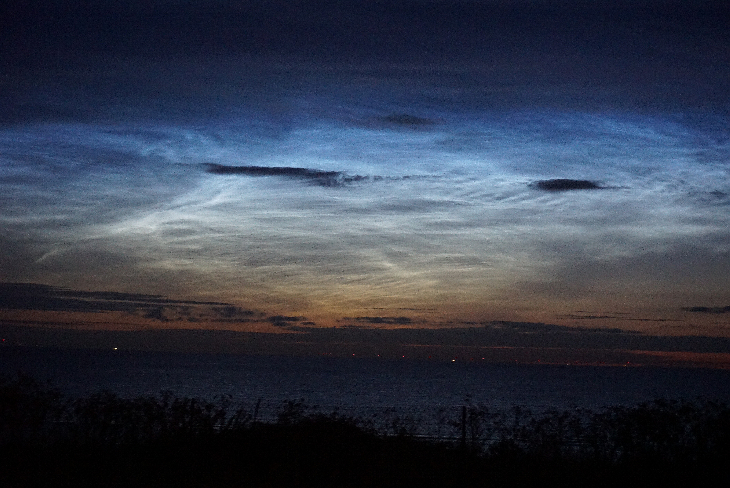We were camping by the sea and woke up just after 2.00am to see the noctilucent clouds.