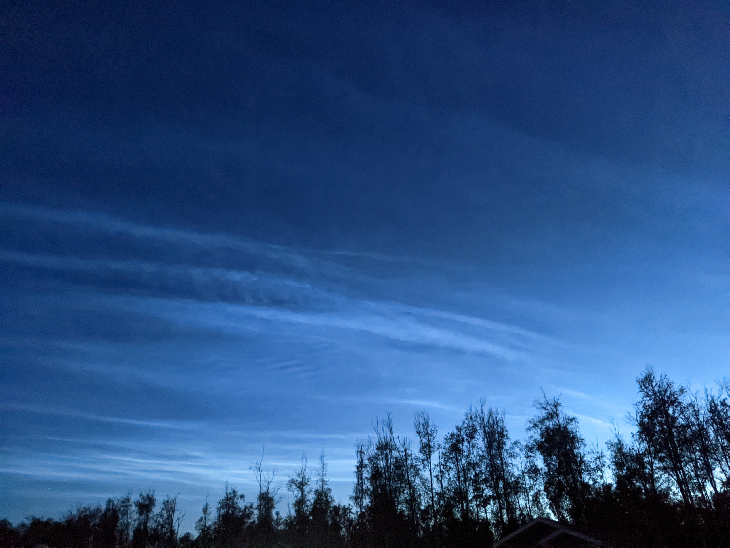 On 7/26 at roughly 2am i came outside and to my surprise i believe I saw noctilucent clouds here in Knik Alaska. Others in the ANC saw them too, which convinced me. Just another pretty thing in the night sky to watch for, I'll never sleep I swear....