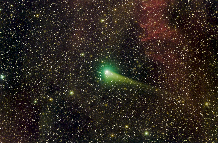 This image shows comet 2017 K2 framed in interstellar gas clouds. Captured in Siding Spring Australia with T69 telescope. It is a stack of 19 x 120 sec. This comet is still months from maximum brightness and it is already looking great.