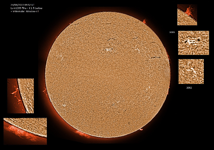 AR3082, 3085 and prominences