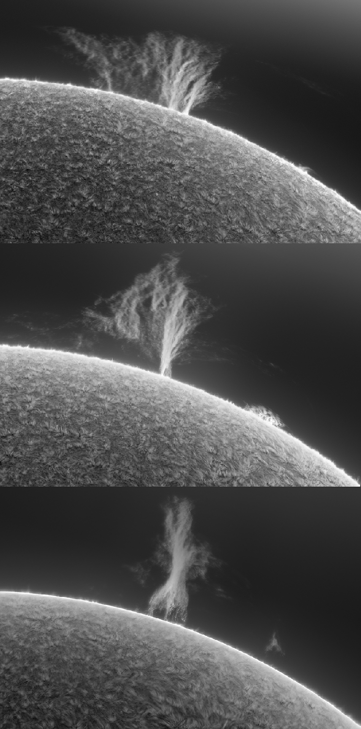 The evolution of this week's beautiful large prominence which I had the good fortune to photograph August 24-27 from my Buffalo, NY backyard.
