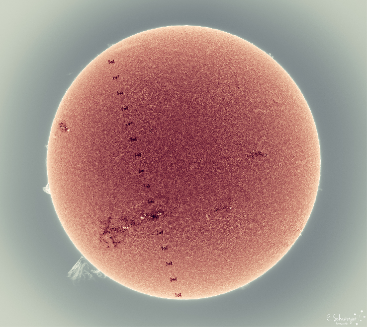 Huge prominence and ISS Transit