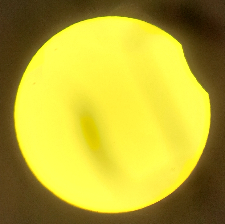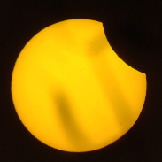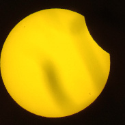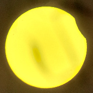 Near to best viewing conditions today for the event of partial solar eclipse which was 9% covered by Moon. Instrument used was a 6 Inch Newtonian reflector with solar filters and modified suitably for eclipse viewing.