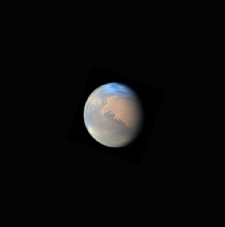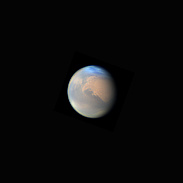 Mars with an electric blue North Polar Hood