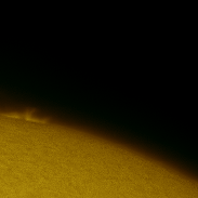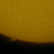 There are a number of sunspots, but the prominences are a bit diminished compared to other days.