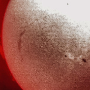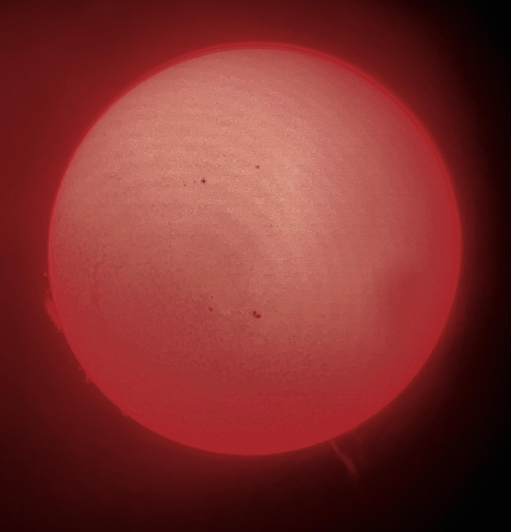 AR 3153 is almost centered, and above it, AR 3156 and AR 3157 are also active. Huge filamnet below it, and beautiful prom on South limb. To east, a forest of proms on the limb, and another fine filament just on disk. Lunt 60, B 1200 Ha diagonal, 12mm Plossl, iPhone 12s, mono and dramatic warm modes.