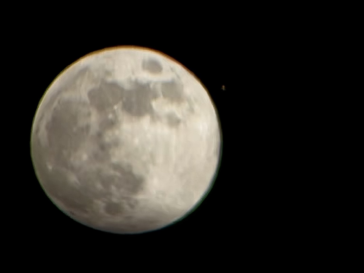 Turns out best views were from my Pentax 20x60 binos on a tripod. Mars looked like Narya flaming on Gandalf's finger, glittering like living fire against the cold hard diamond light of Nenya as the Moon.